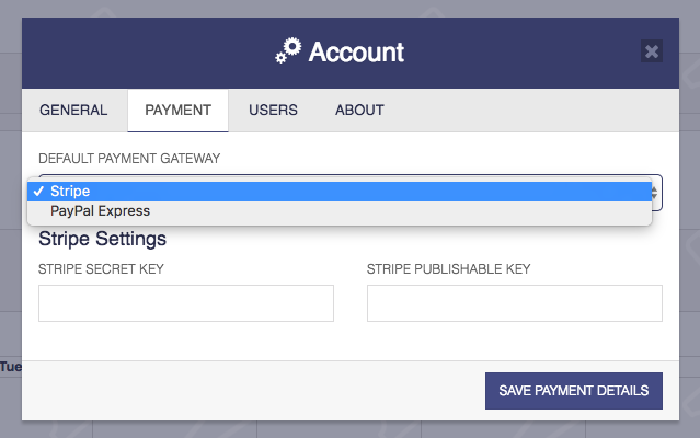 - Select the payment gateway you wish to use from the drop down and enter the setting for that particular gateway.